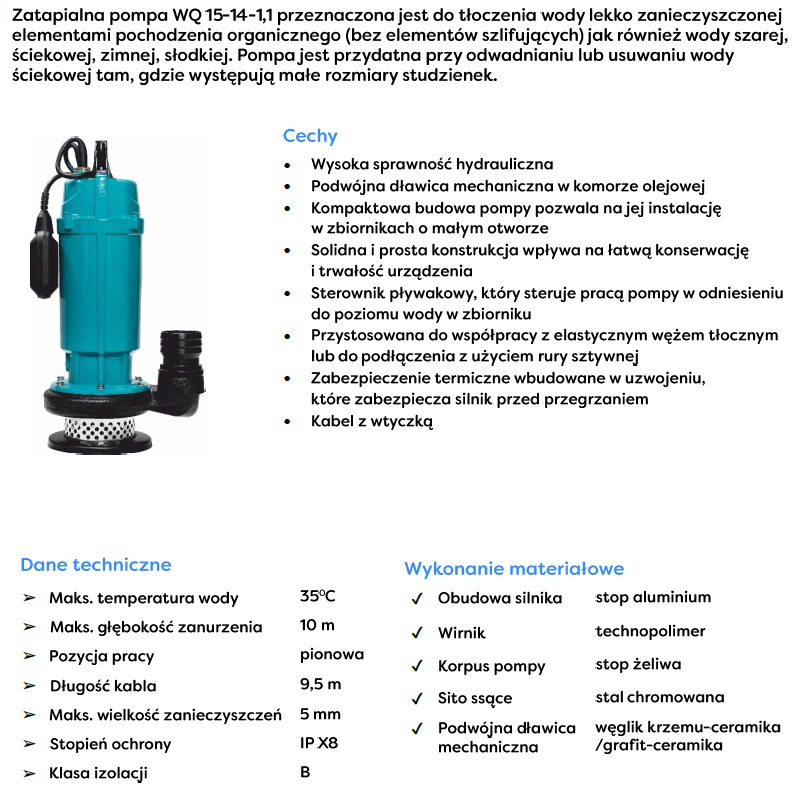 - pompa zatapialna WQ 15‑14‑1,1 230V OMNIGENA