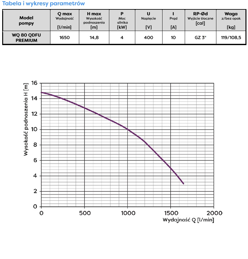 Pompa zatapialna WQ 80 QDFU PREMIUM 400V OMNIGENA