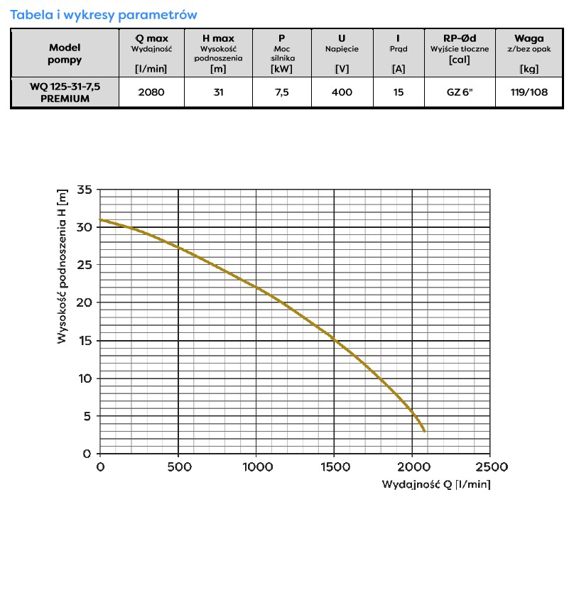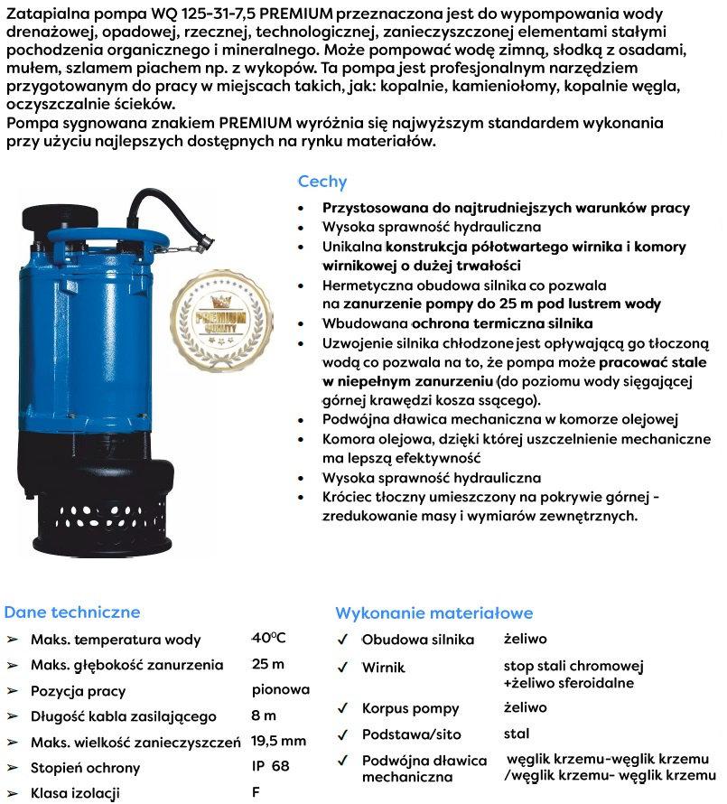 - pompa zatapialna WQ 125‑31‑7,5 PREMIUM 400V OMNIGENA