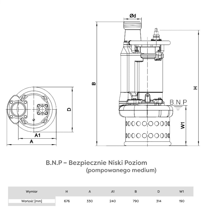 - możliwość ciągłej, nieprzerwanej pracy – nawet w przypadku niepełnego zanurzenia pompy
