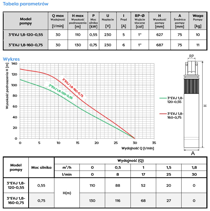 Pompa głębinowa 3" EVJ 1,8‑120‑0,55