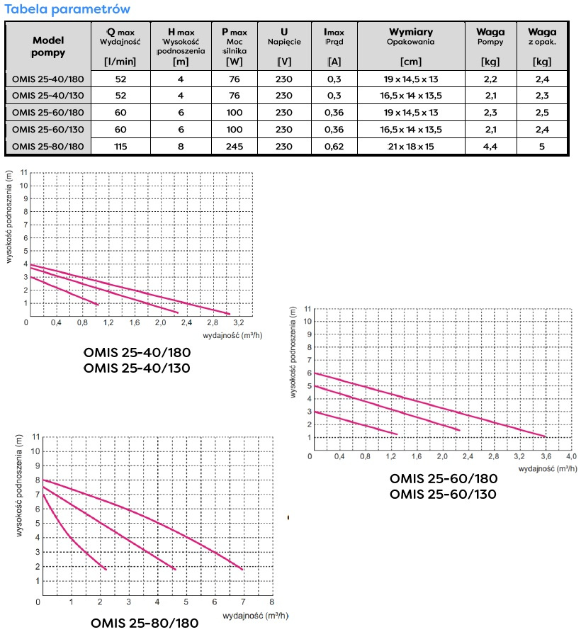 Pompy obiegowe Omnigena serii Omis zbudowane są z hydrauliki oraz silnika elektrycznego, zasilanego prądem o napięciu 230V, z możliwością sterowania prędkością obrotową. Trzy biegi pozwalają na osiągnięcie różnych parametrów, adekwatnych do zapotrzebowania oraz właściwości posiadanej instalacji.