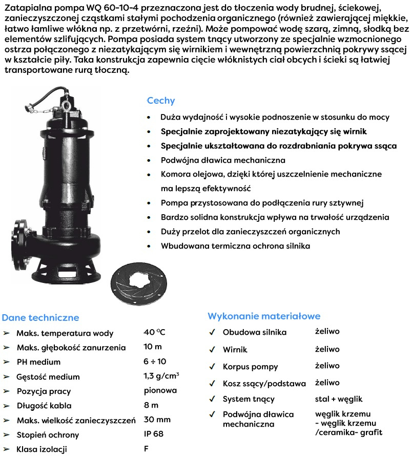 - pompa zatapialna WQ 60‑10‑4 400V OMNIGENA
