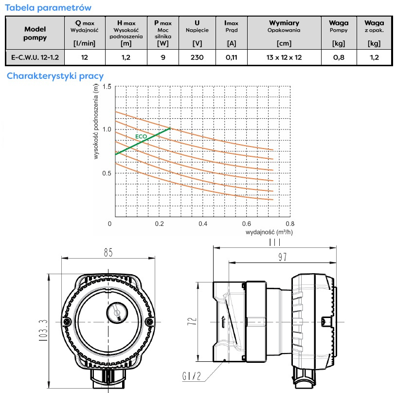 - pompa cyrkulacyjna do E‑C.W.U. 12‑1,2 Omnigena