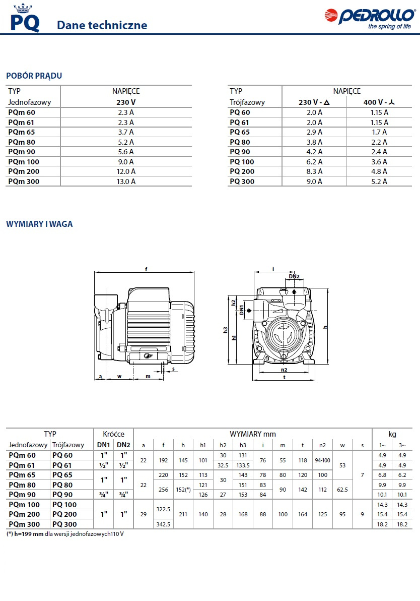 Pompy hydroforowe marki Pedrollo typu PQm to monoblokowe pompy z wirnikiem obwodowym. Wyróżniają się niezawodnością i ekonomicznością. Przeznaczone są do pompowania wody czystej, o dopuszczalnej temperaturze w zakresie od ‑10°C do 90°C. Tłoczone przez pompę medium powinno być pozbawione ciał stałych o właściwościach szlifujących, a także być nieagresywne chemicznie w stosunku do materiałów, z jakiej wykonane zostały komponenty pompy. Wykorzystywane są do podnoszenia cieczy ze studni oraz innych zbiorników – naturalnych i sztucznych. Pompy hydroforowe Pedrollo PQm powinny być zamontowane w miejscu zamkniętym, dobrze wentylowanym, w którym nie będą narażone na działanie czynników atmosferycznych. Maksymalna głębokość zasysania pomp hydroforowych PQm wynosi 8m.