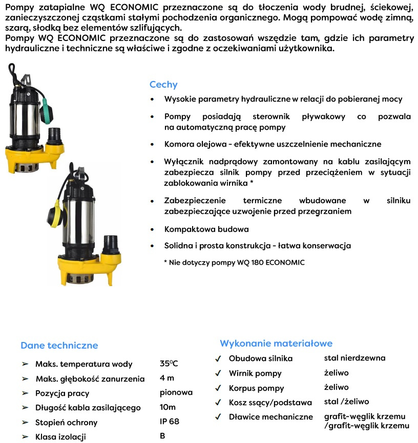 - pompa zatapialna WQ 250 ECONOMIC 230V OMNIGENA