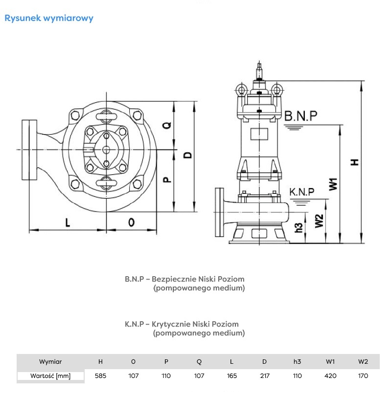Budowa pomp zatapialnych Omnigena serii WQ 40‑10‑2,2