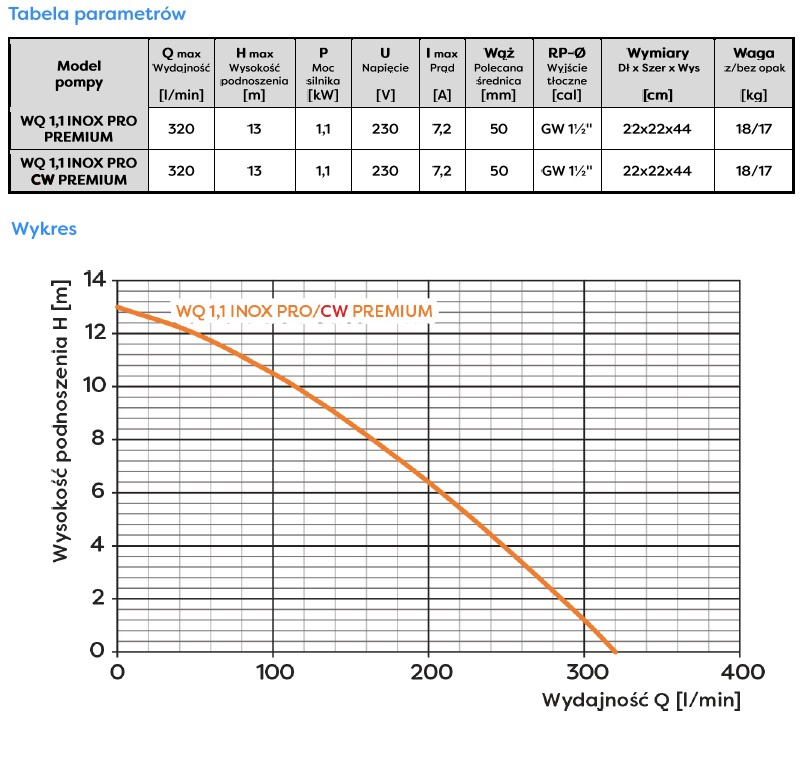 - pompa zatapialna WQ 1,1 INOX PRO CW PREMIUM 230V OMNIGENA