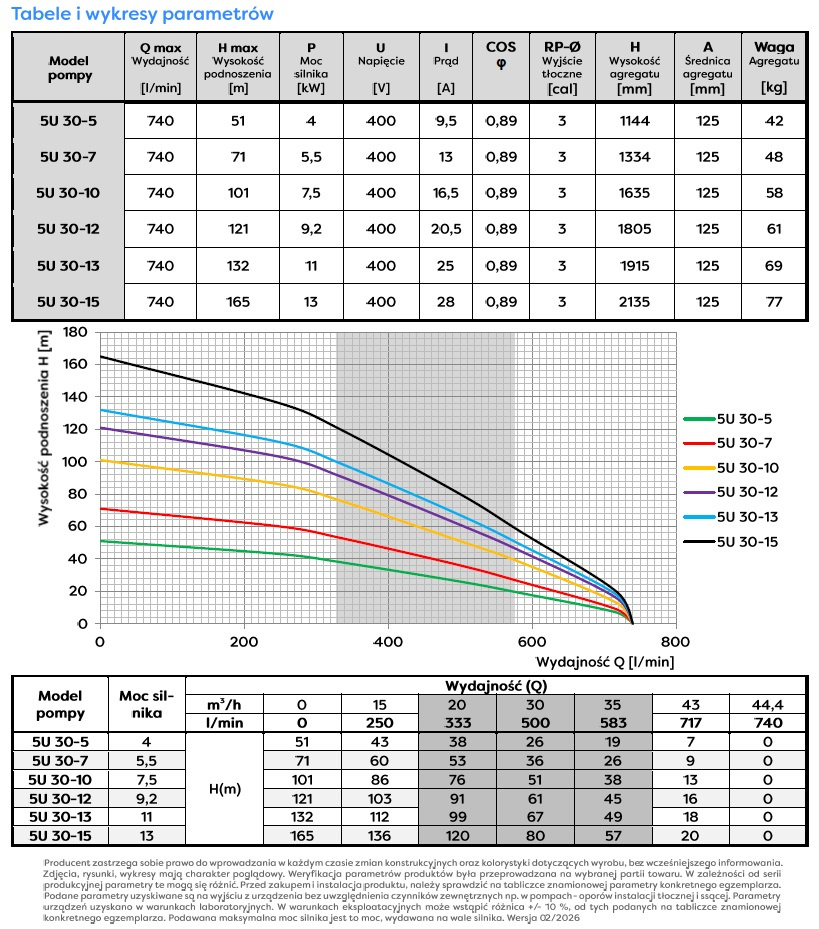 - zakres parametrów i mocy silnika tych pomp głębinowych pozwala w pełni zaspokoić każdą indywidualną potrzebę klienta ‑ nawet najbardziej niestandardową