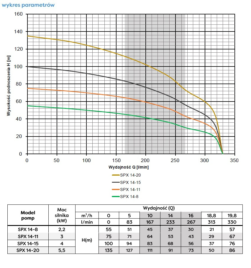 Pompy głębinowe SPX służą do wynoszenia czystej, zimnej wody o temperaturze, nie większej niż 30°C, pozbawionej zanieczyszczeń ściernych oraz długowłóknistych. Mimo wszystko wyróżniają się podwyższoną odpornością na obecność piasku w cieczy, za sprawą unikalnej konstrukcji. Pompy głębinowe SPX wykorzystywane są do pompowania wody ze studni głębinowych, oraz w zbiornikach kręgowych wolnostojących, z lustrem wody poniżej 8m.