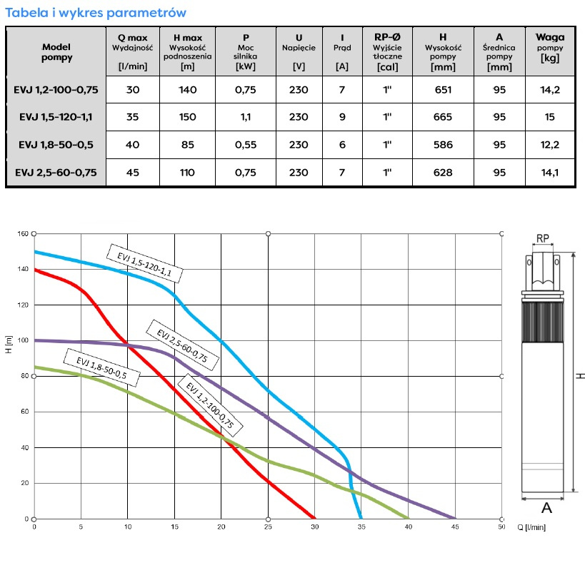 Pompa głębinowa EVJ 1,2‑100‑0,75