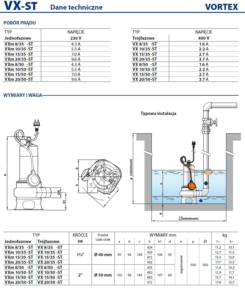 - pompa zatapialna VXm 8/50 ST VORTEX 230V PEDROLLO