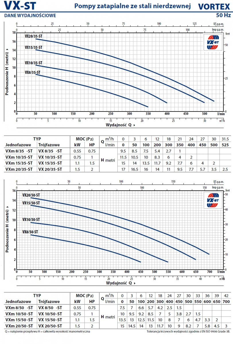 W pompach zatapialnych VX zastosowano wydajne silniki elektryczne jednofazowe bądź trójfazowe zasilane prądem o napięciu 230V bądź 400V, chłodzone pompowaną cieczą. Najnowsze rozwiązanie konstrukcyjne zapewniają wysokie chłodzenie silnika i wału za sprawa pompowanej substancji. Silniki wyposażone są dodatkowo w zabezpieczenie termiczne oraz w wyłącznik pływakowy.
