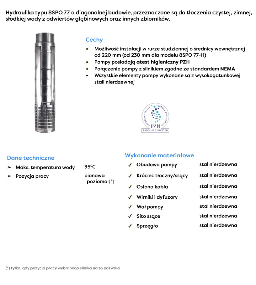 Cecha charakterystyczną pomp głębinowych SPO, wyróżniającą się spośród innych modeli jest to, że wykonane są one w całości z ponadprzeciętnie odpornej na działanie czynników korozyjnych stali nierdzewnej. Zastosowanie takiego rozwiązania konstrukcyjnego zapewnia pompom SPO niezwykle długą żywotność. Dołączając do tego doskonałe i zróżnicowane parametry, powstaje urządzenie, które cieszy się szerokim uznaniem i wykorzystaniem w wielu zróżnicowanych miejscach.