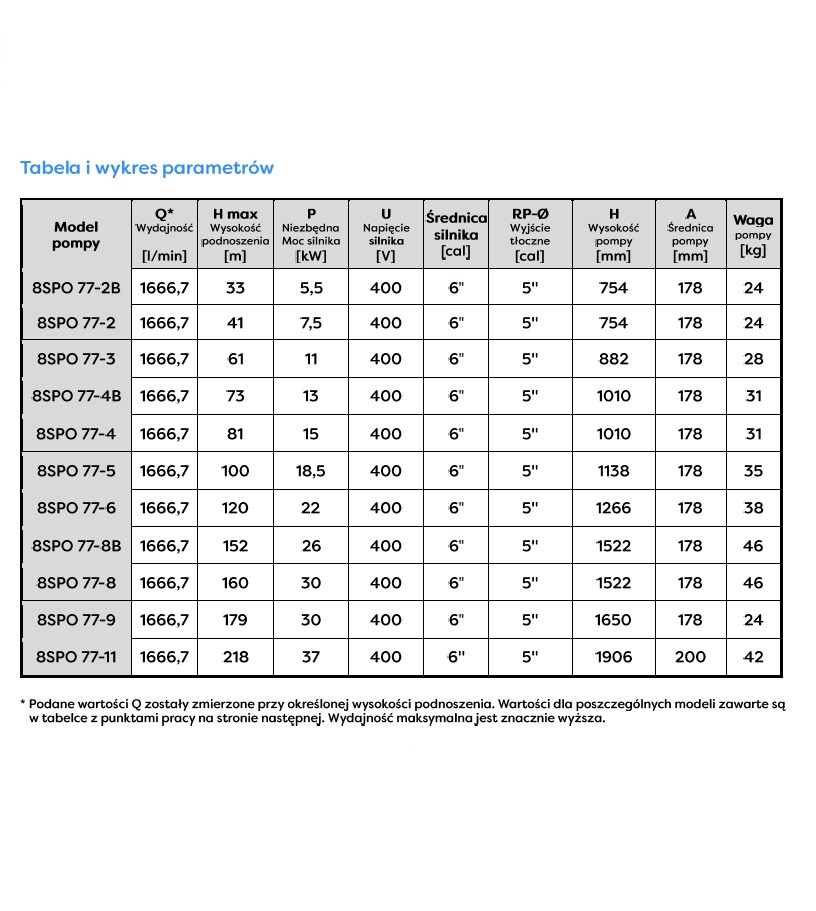 Pompa głębinowa 8" SPO 77‑4B 13kW 400V 6" Omnigena