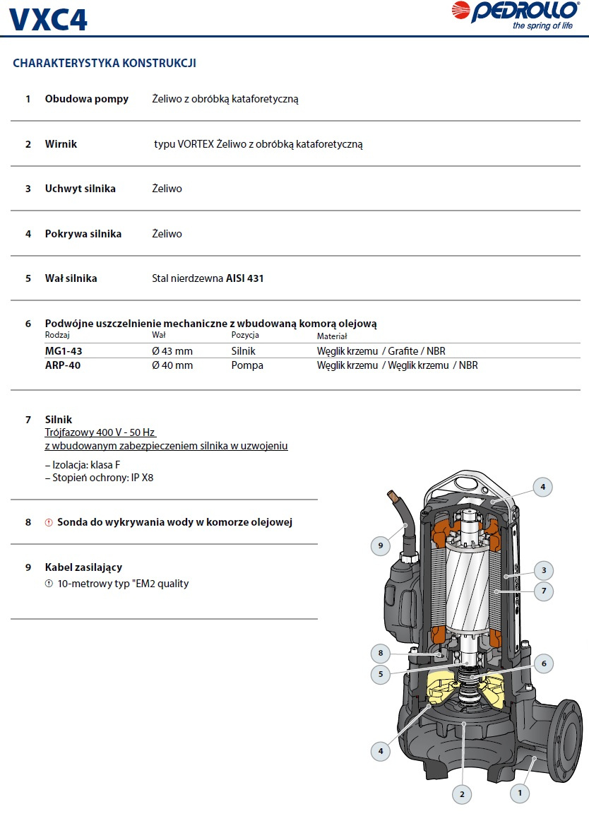Budowa pomp zatapialnych Pedrollo serii VXC