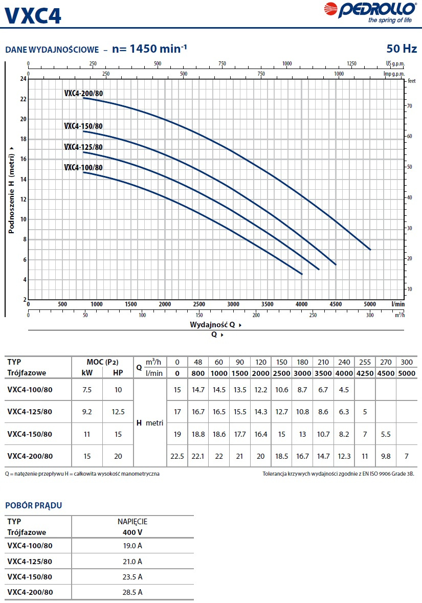 Pompa zatapialna VXC4 150/80 VORTEX 400V PEDROLLO