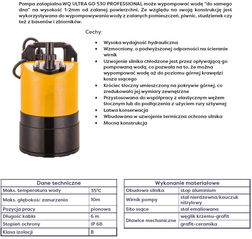 - pompa zatapialna WQ ULTRA GO 530 PROFESSIONAL 230V OMNIGENA