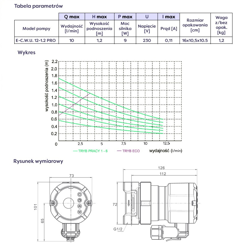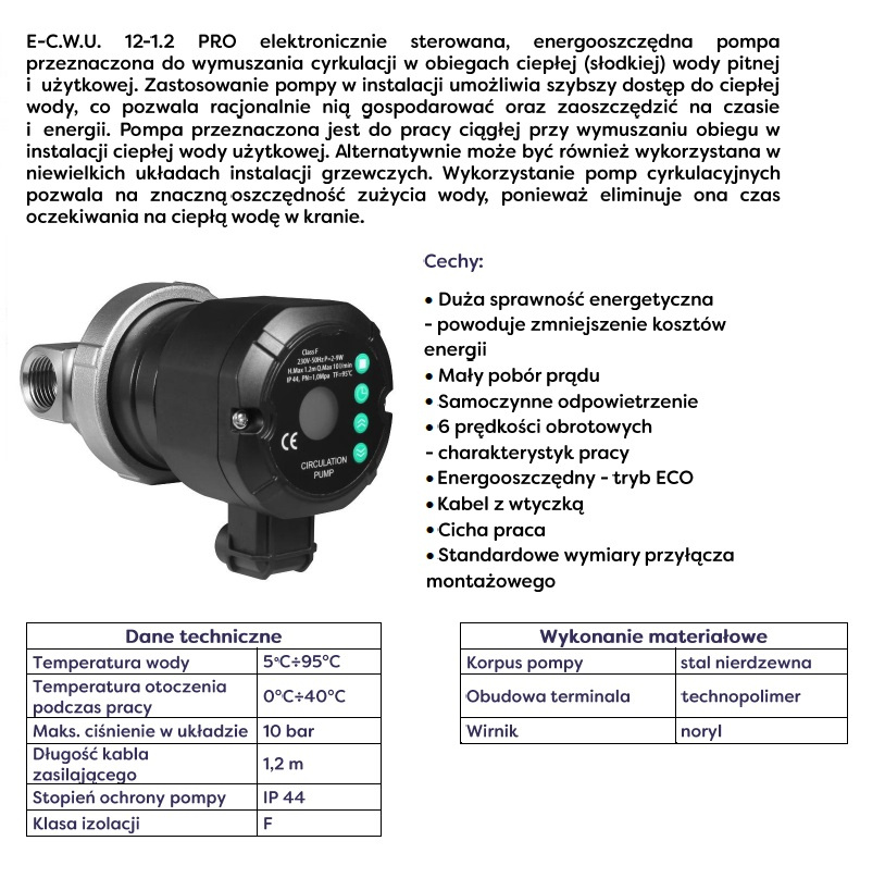 - pompa cyrkulacyjna do E‑C.W.U. 12‑1,2 PRO Omnigena