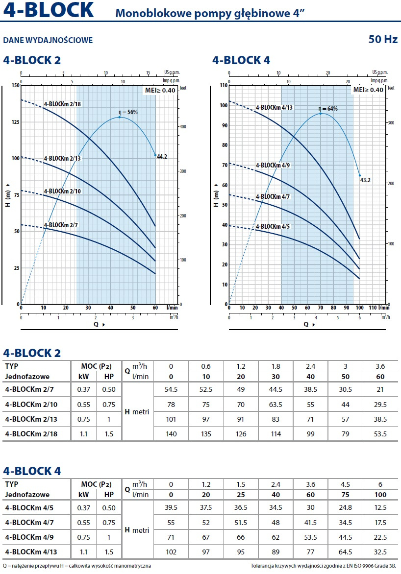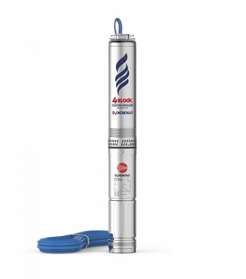 Pompy głębinowewłoskiej marki Pedrollo serii 4BLOCK to niezwykle wydajne i trwałe pompy. Wykorzystywane są do pompowania czystej, zimnej wody ze studni głębinowych, a także studni kręgowych oraz innych zbiorników wolnostojących. Pompy głębinowe Pedrollo, dzięki unikalnej i solidnej konstrukcji mogą transportować ciecz z obecnością piasku aż do 200mg/m³.