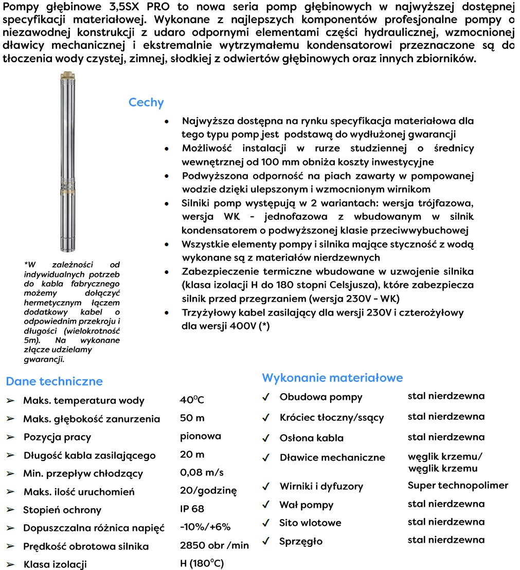 Cechy i zalety pomp głębinowych Omnigena 3,5'' SX PRO
