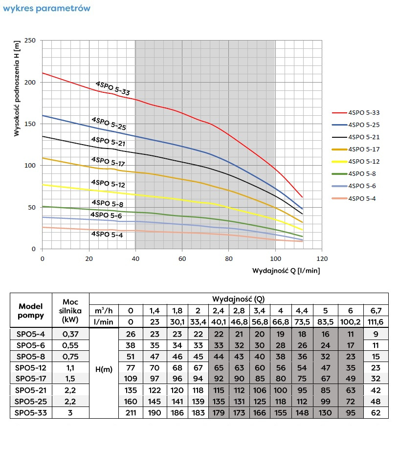 Pompy głębinowe serii SPO to jedne z najtrwalszych pomp dostępnych na rynku. Ich przeznaczeniem jest tłoczenie czystej, zimnej wody użytkowej, niezawierającej zanieczyszczeń ściernych i długowłóknistych, której temperatura nie jest większa niż 30°C. Pompy głębinowe SPO przystosowane są do pompowania nieagresywnej chemicznie cieczy ze studni głębinowych, oraz innych źródeł, w których lustro wody usytuowane jest na poziomie niższy niż 8m.