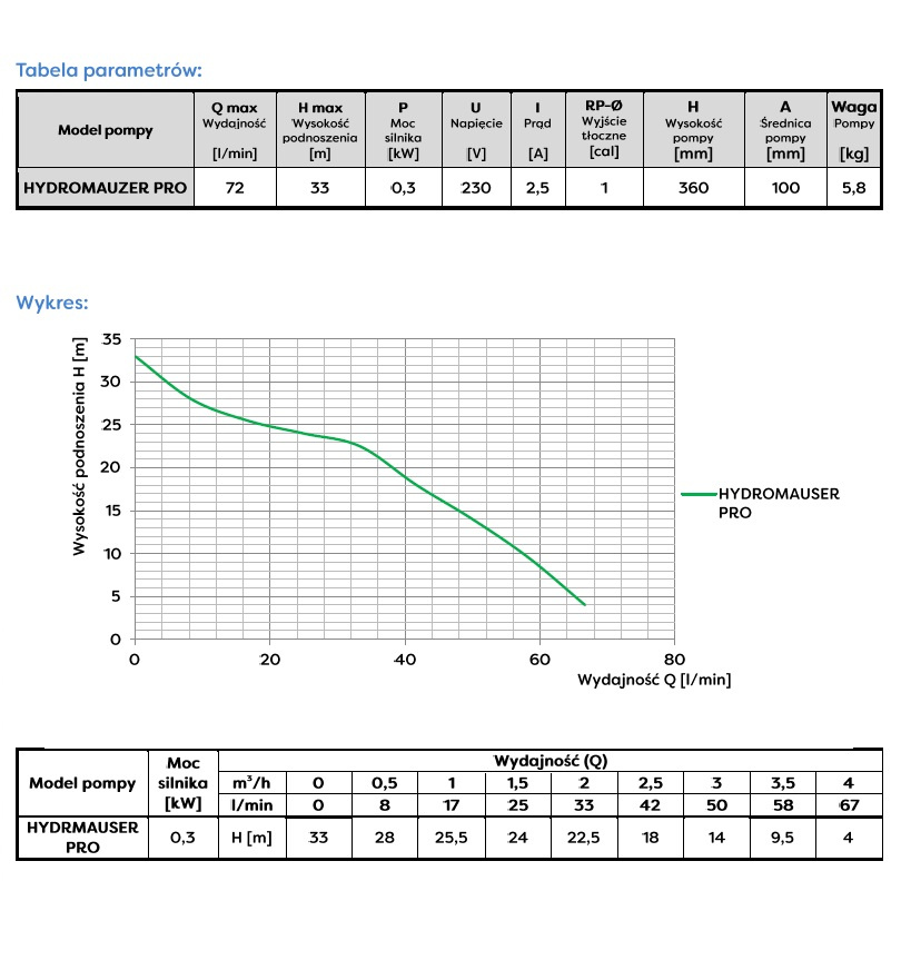- duża wysokość podnoszenia, dzięki czemu urządzenie nadaje się do podlewania