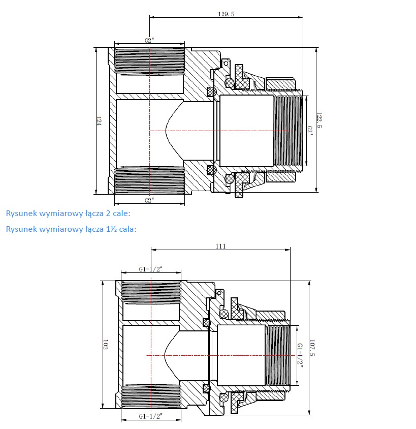 - kompletne złącze szwedzkie o średnicy przyłącza hydraulicznego 2" MOSIADZ