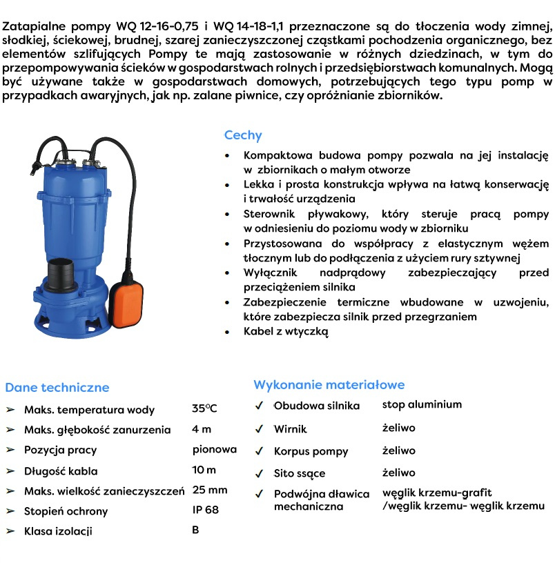 - pompa zatapialna WQ 12‑16‑0,75 230V OMNIGENA