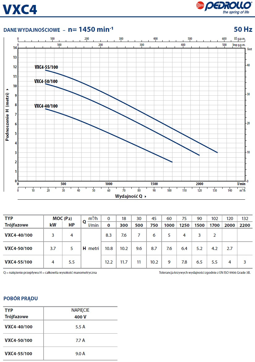 - pompa zatapialna VXC4 50/100 VORTEX 400V PEDROLLO
