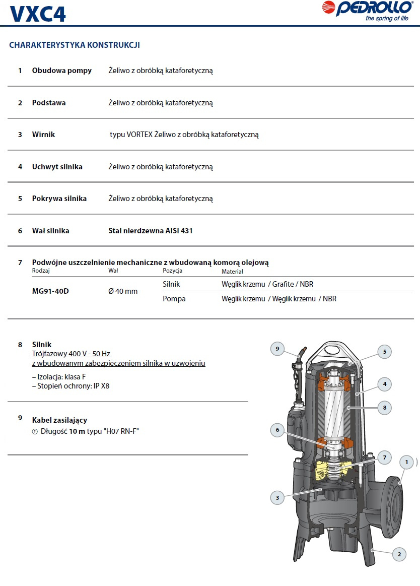 Budowa pomp zatapialnych Pedrollo serii VXC