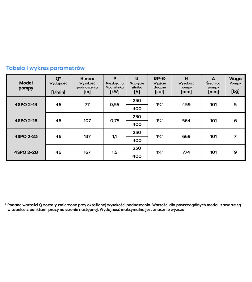 - kompletna pompa głębinowa 4" SPO 2‑13 0,55kW 230V Omnigena