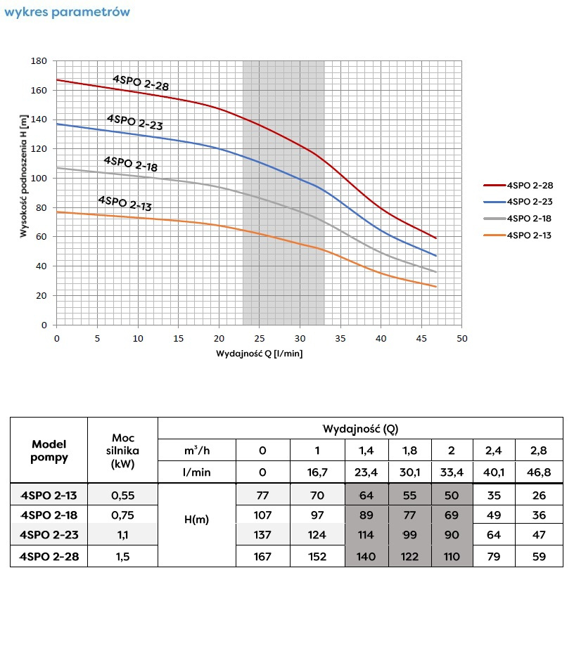 Pompy głębinowe SPO służą do wynoszenia czystej, zimnej wody o temperaturze, nie większej niż 30°C, pozbawionej zanieczyszczeń ściernych oraz długowłóknistych. Mimo wszystko wyróżniają się podwyższoną odpornością na obecność piasku w cieczy, za sprawą unikalnej konstrukcji. Pompy głębinowe SPO wykorzystywane są do pompowania wody ze studni głębinowych, oraz w zbiornikach kręgowych wolnostojących, z lustrem wody poniżej 8m.