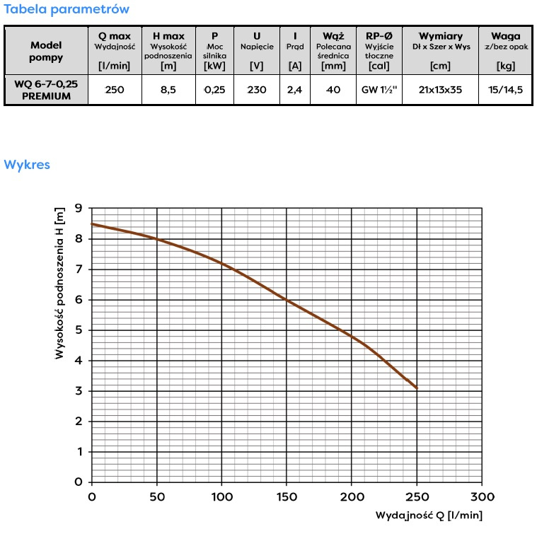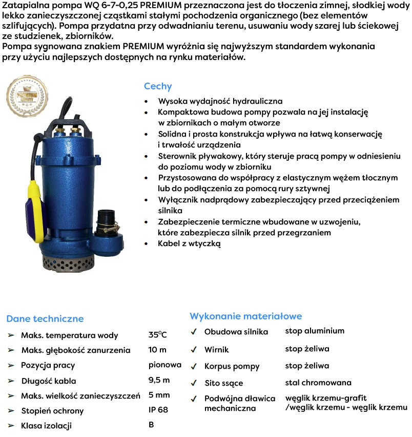 Pompa zatapialna WQ 6‑7‑0,25 PREMIUM 230V OMNIGENA