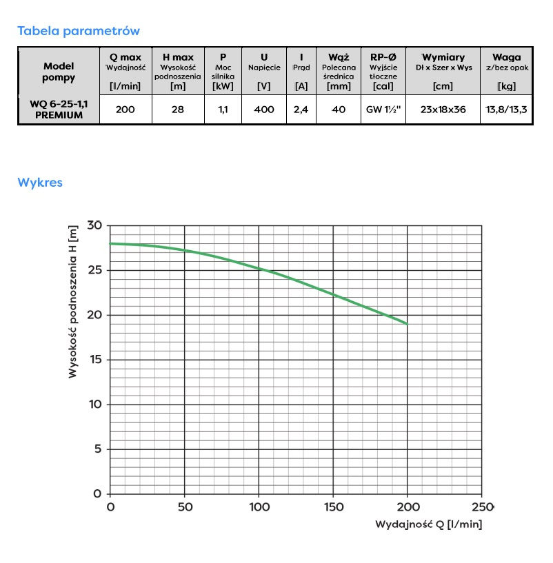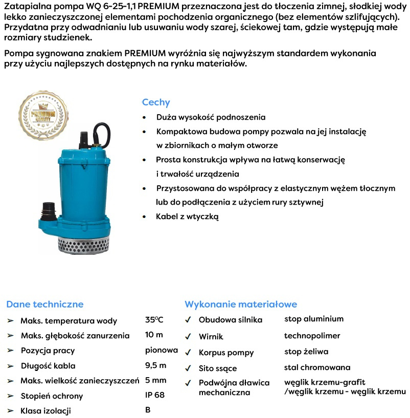 - pompa zatapialna WQ 6‑25‑1,1 PREMIUM 400V OMNIGENA