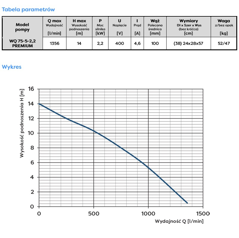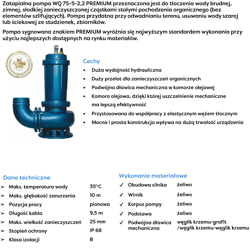 - pompa zatapialna WQ 75‑5‑2,2 PREMIUM 400V OMNIGENA